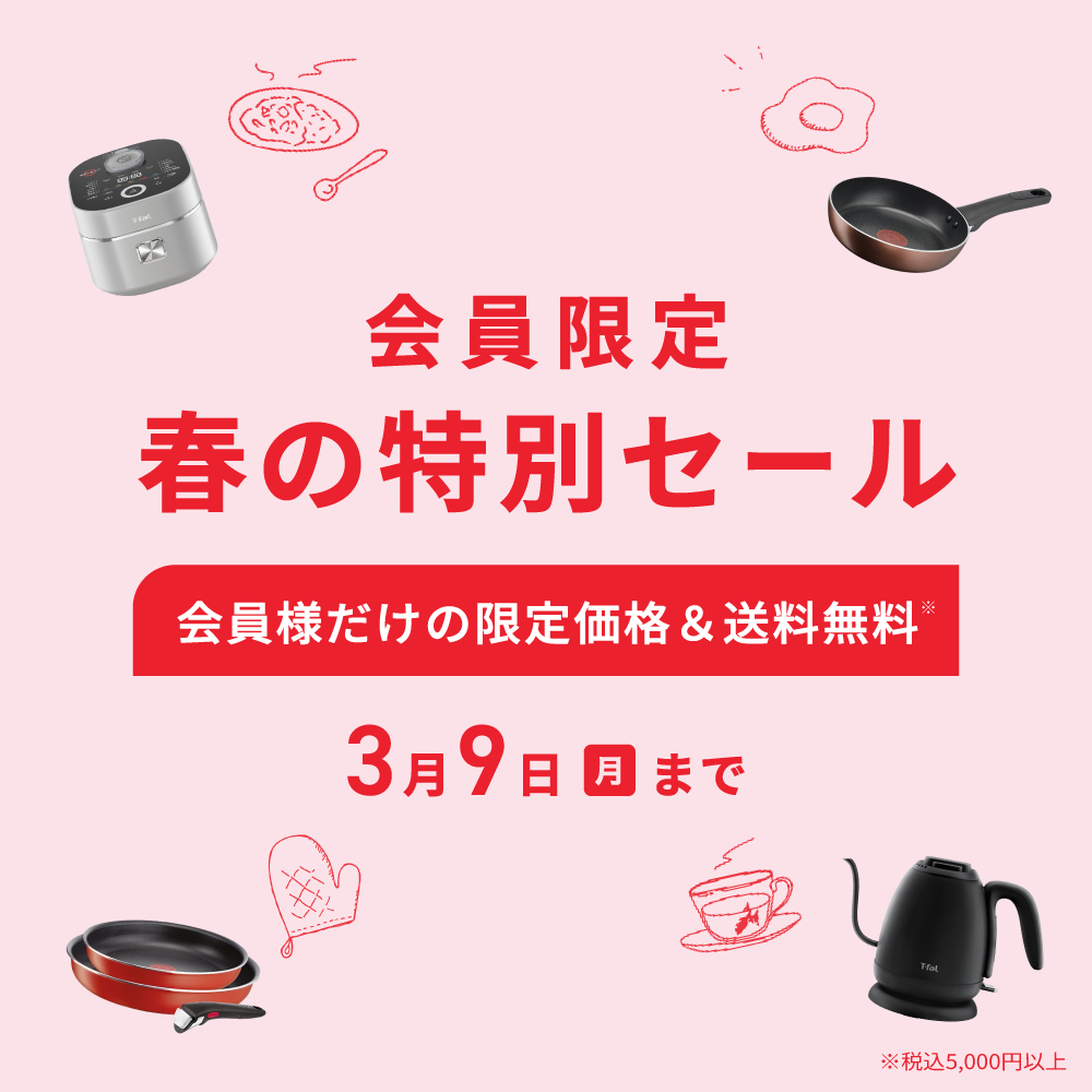 会員限定の特別セール開催中!フライパンや電気ケトル・圧力鍋などのティファール製品がお得にお求めいただけます!