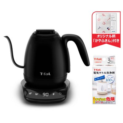 人気の温度調節機能つき電気ケトルと、お手入れに便利な電気ケトル洗浄剤のセット。
