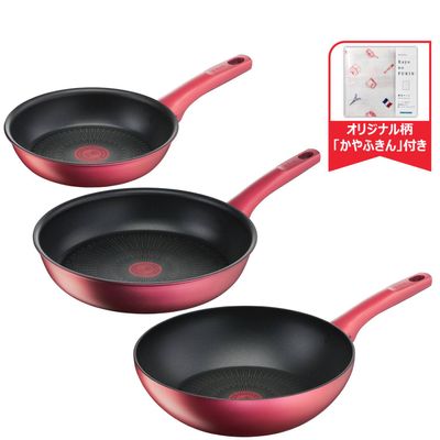 よく使う20/26cmサイズのフライパンに加えて、たっぷりの炒め物にも活躍するウォックパンも入ってさらに使いやすく。