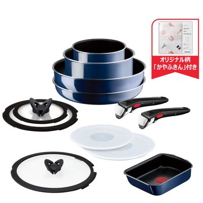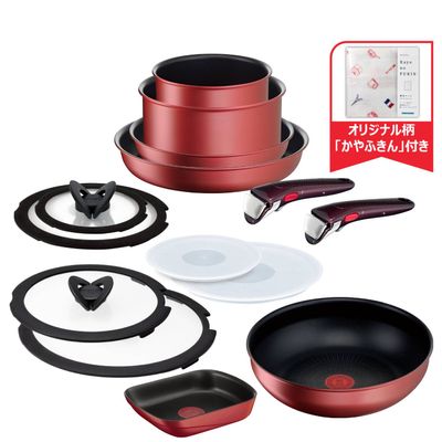 定番の9点セットに、たっぷりの炒め物にも便利なウォックパン(炒め鍋)と、たまご焼きはもちろんのこと、小さなフライパンとしてお弁当作りなどにも便利なエッグロースターをを組み合わせました。 さらに、フライパン22/26cm用のガラス蓋、同時調理に便利な専用取っ手をもう一本プラスした充実の14点セット。