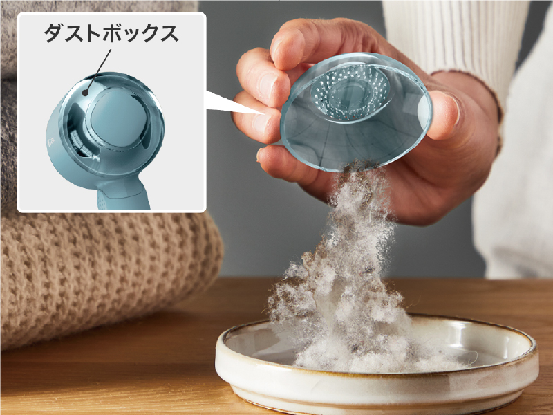 毛玉のたまり具合がひと目で分かる透明ダストボックスは、マグネット式で簡単に着脱が可能。ごみ捨てに手間取りません。