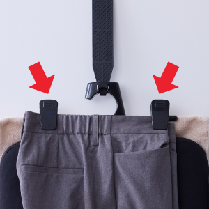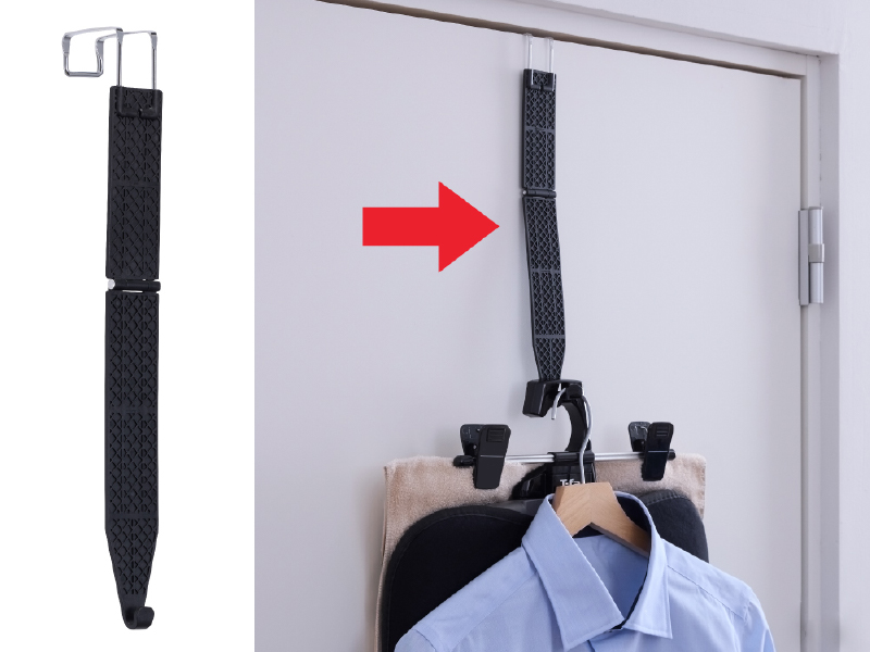 クローゼットや部屋の扉に簡単取り付け・外しができる専用ドアフック付き。
