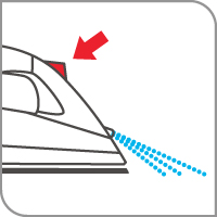 頑固なシワをのばすときに便利なワンタッチスプレー付き。アイロンをかけながらでも操作が簡単。