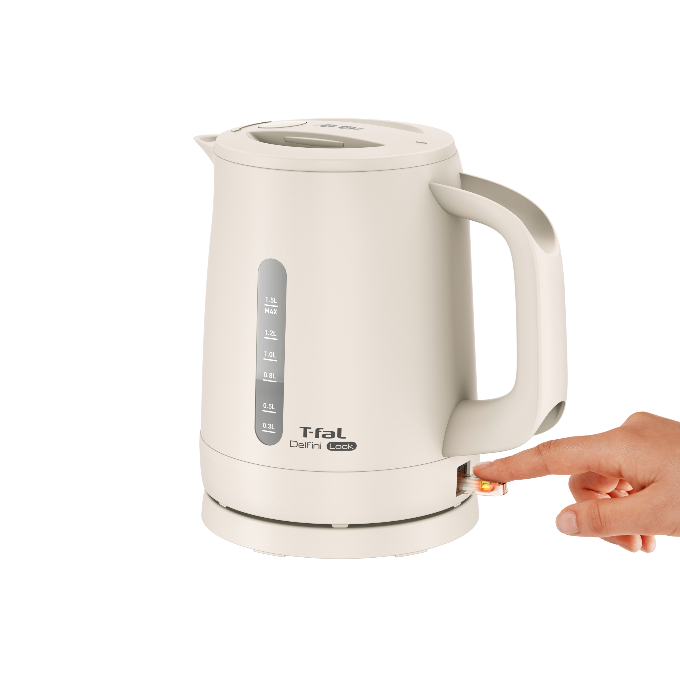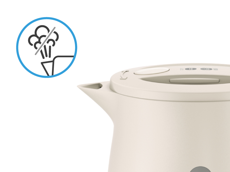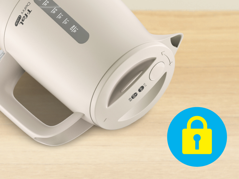 倒れてもこぼれにくいロック機能付きで、やけどなどの危険性を軽減。
