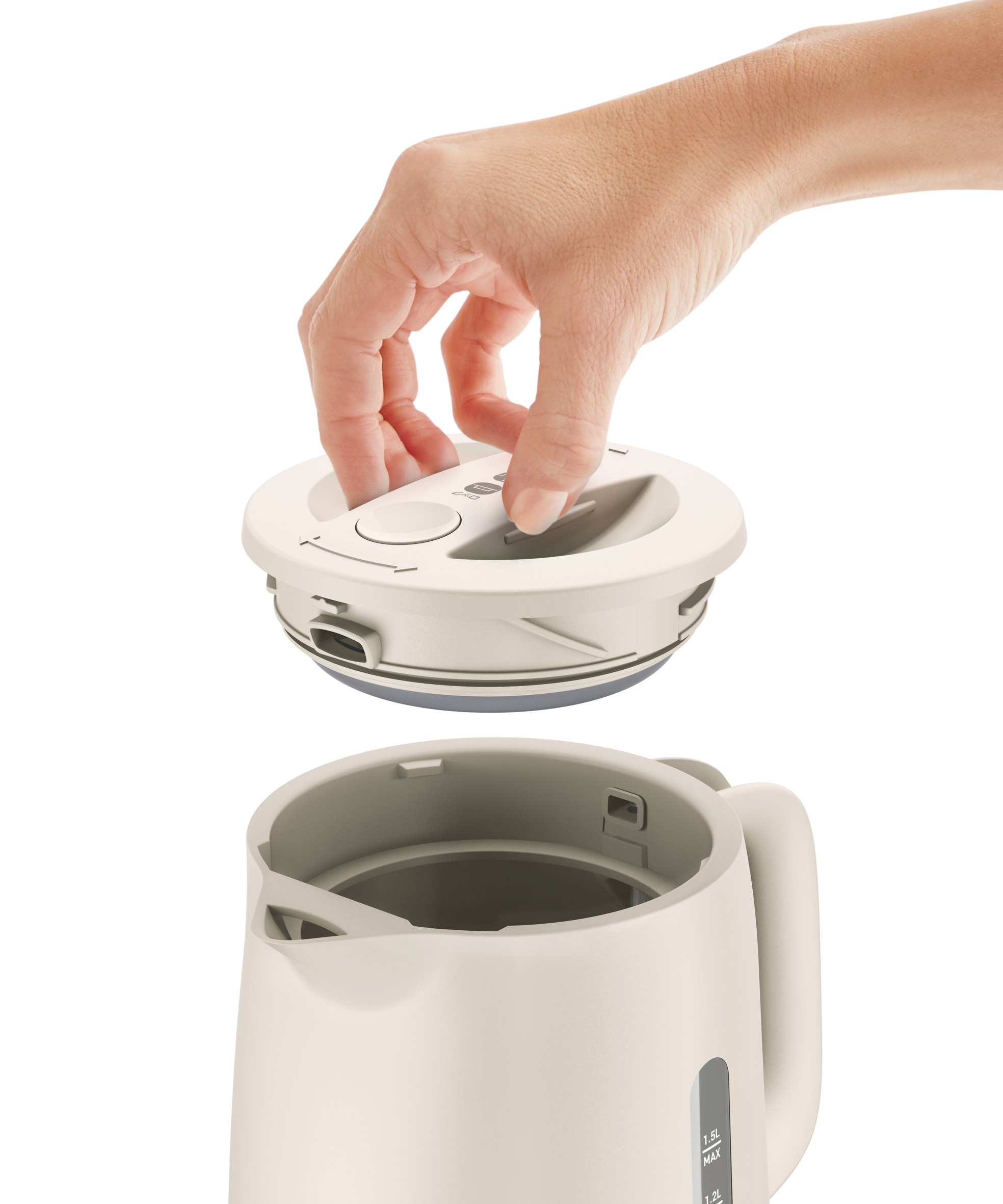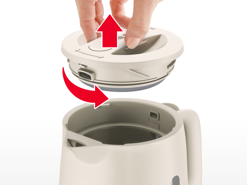回して持ち上げるだけで取り外せるフタ。給水しやすく、内側のお手入れもしやすい。