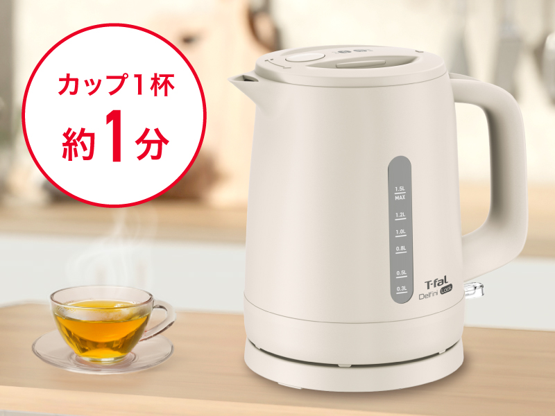 *水温・室温23度の条件で、記載量が沸騰するまでの時間。沸騰後、しばらくすると自動電源オフ機能が働きます。カップ1杯相当(約140mL)から沸かせますが、水量目盛の300mL以上でのご使用をおすすめします。