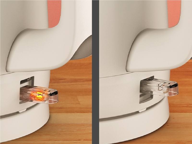 湯沸かし中はハンドル下のスイッチにあるパイロットランプが点灯。