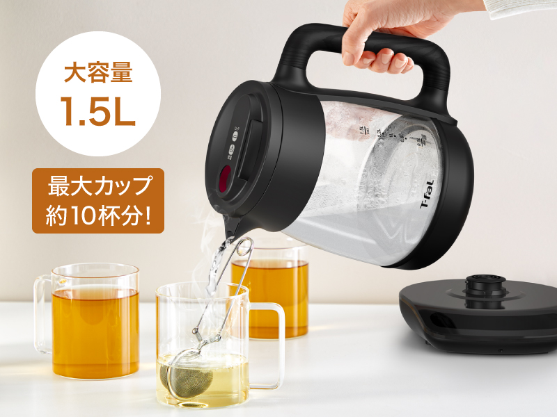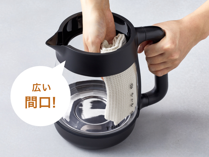 大きな開口部だから電気ケトル内側のお掃除がしやすく、いつでも清潔に保てます。