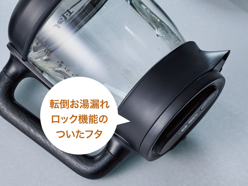倒れてもこぼれにくいフタ付きで、やけどなどの危険性を少なくします。
