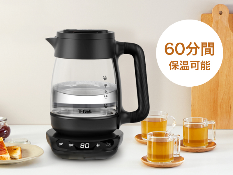 お好みの温度で60分間保温可能。2杯目も沸かし直さず、すぐに飲めます。