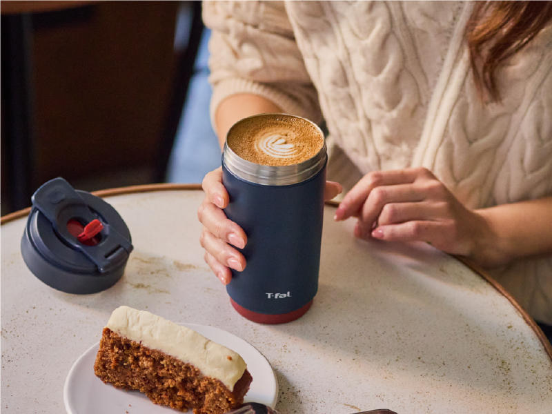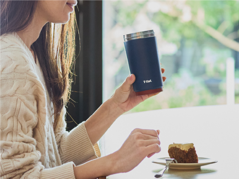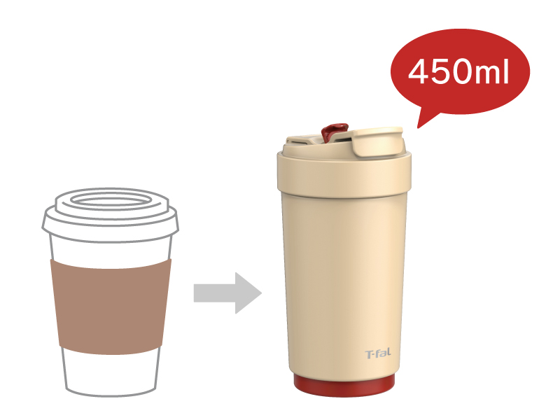 カフェのカップ感覚で、いれたてのおいしさそのままに。ストロー、直飲み、ふたを外して広口で直飲みの3WAYタンブラーでお好みの飲み物を楽しめます。 | |
