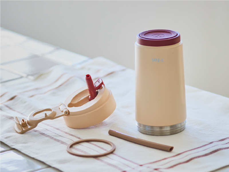 広口なので洗いやすく、丸洗いOK。さらに、本体、ふた、パッキン、ストローに分解でき、隅々まできれいに洗える。