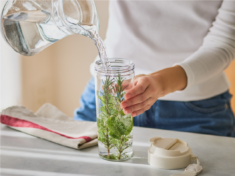 フルーツ水も快適に。フィルターが果肉や種をキャッチするので、フルーツウォーターやハーブウォーターなどを気軽に楽しめます。