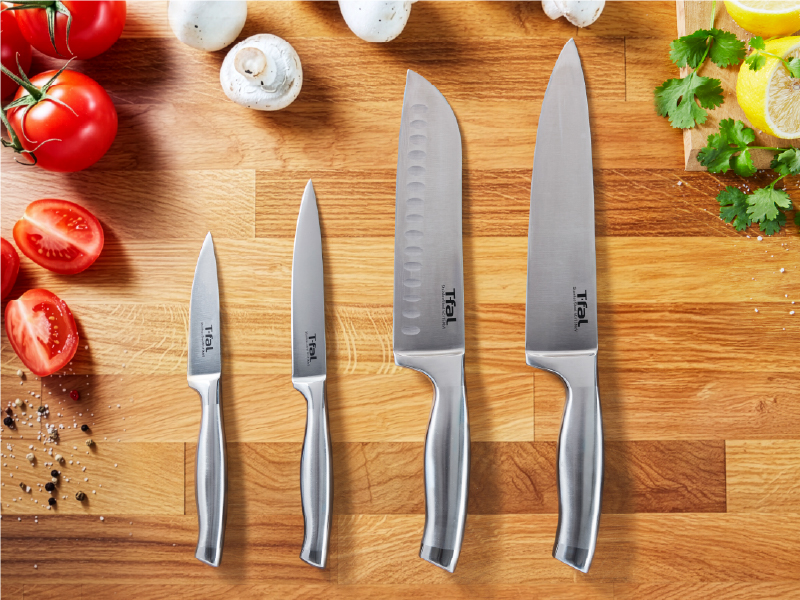 「三徳」とは、肉・魚・野菜の三つの用途に使うことができることを意味しており、三徳ナイフは様々な食材のカットに適した、日本で一般的に使われる万能包丁です。他のナイフは特定の用途に特化しています。例えば、ペティナイフはフルーツや小型の野菜のカットなど細かい作業に適し、シェフナイフは肉や魚など大きな食材のカットに適しています。他にも様々な種類のナイフがあります。