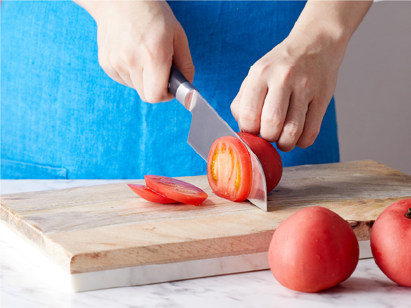 アイスフォースは、日本ならではの包丁の使い方に合わせて開発されたキッチンナイフです。包丁の刃のアゴと呼ばれる突き出している部分が直角で、ジャガイモの芽取りなどをしやすく、また握りやすくなっています。