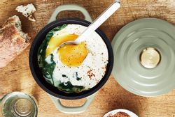 エクスペリエンス+カスレソーセージと鴨肉、インゲン豆を使ったフランスの伝統料理。600年以上前の百年戦争のころにフランスで生まれた料理です。ティファール エクスペリエンス+ならフライパンのままオーブン調理ができるので、手軽にカスレが楽しめます。