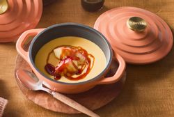 エアココットミニごと温められるので、食べる瞬間まで熱々。おもてなしにもおすすめのチーズがとろ〜りとけたスープが作れます。