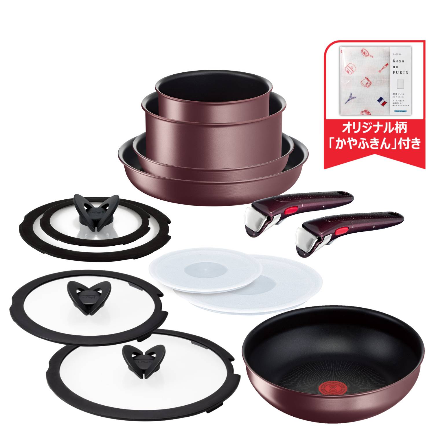 定番の9点セットに、たっぷりの炒め物にも便利なウォックパン(炒め鍋)を組み合わせました。