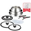 定番の9点セットに、フライパンとソテーパンに使える2種類のガラス蓋と、同時調理に便利な専用取っ手をもう一本プラスしてさらに使いやすく。