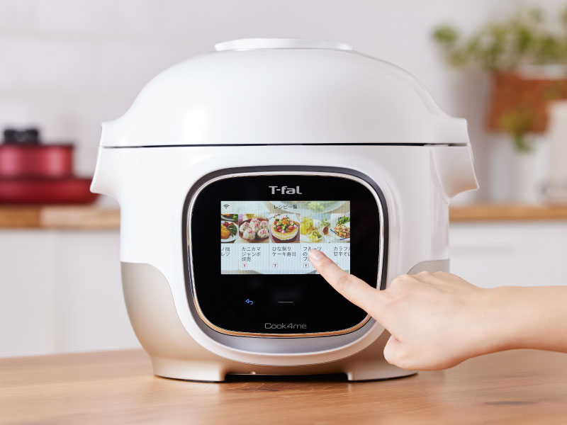 クックフォーミータッチの特徴はスマホのようにサクサク操作しやすいカラーのタッチパネル!レシピ検索から調理までタッチするだけで全ておまかせできます。
