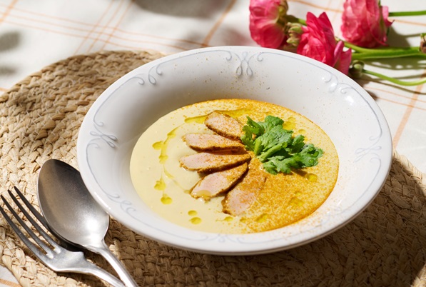 エクスペリエンス+豚バラ肉、モンベリヤールソーセージと根菜類のブレゼフランスの家庭で愛される煮込み料理。豚バラ肉と根菜は焦げる寸前まで炒めると風味豊かに。モンベリヤールソーセージのスモーキーな香りが広がり、ブイヨンだけで素材の味が楽しめます。