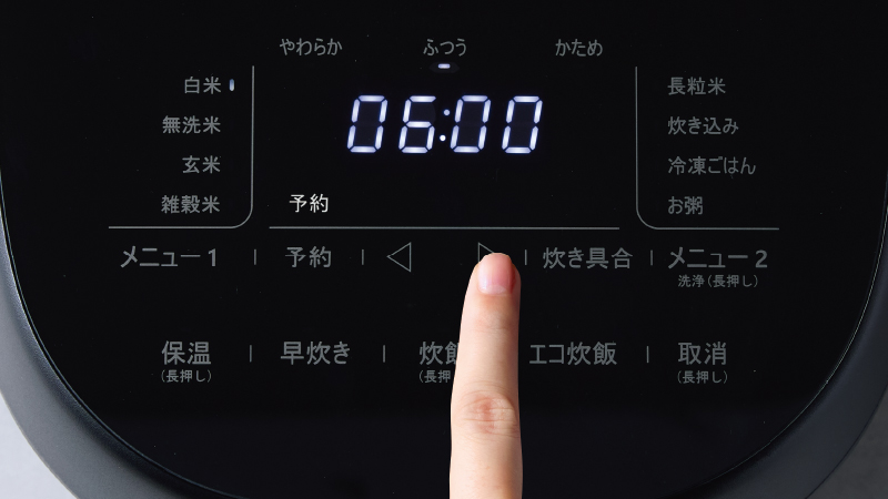 予約時の現在時刻から何時間後に炊き上がるかを10分単位で設定できます。